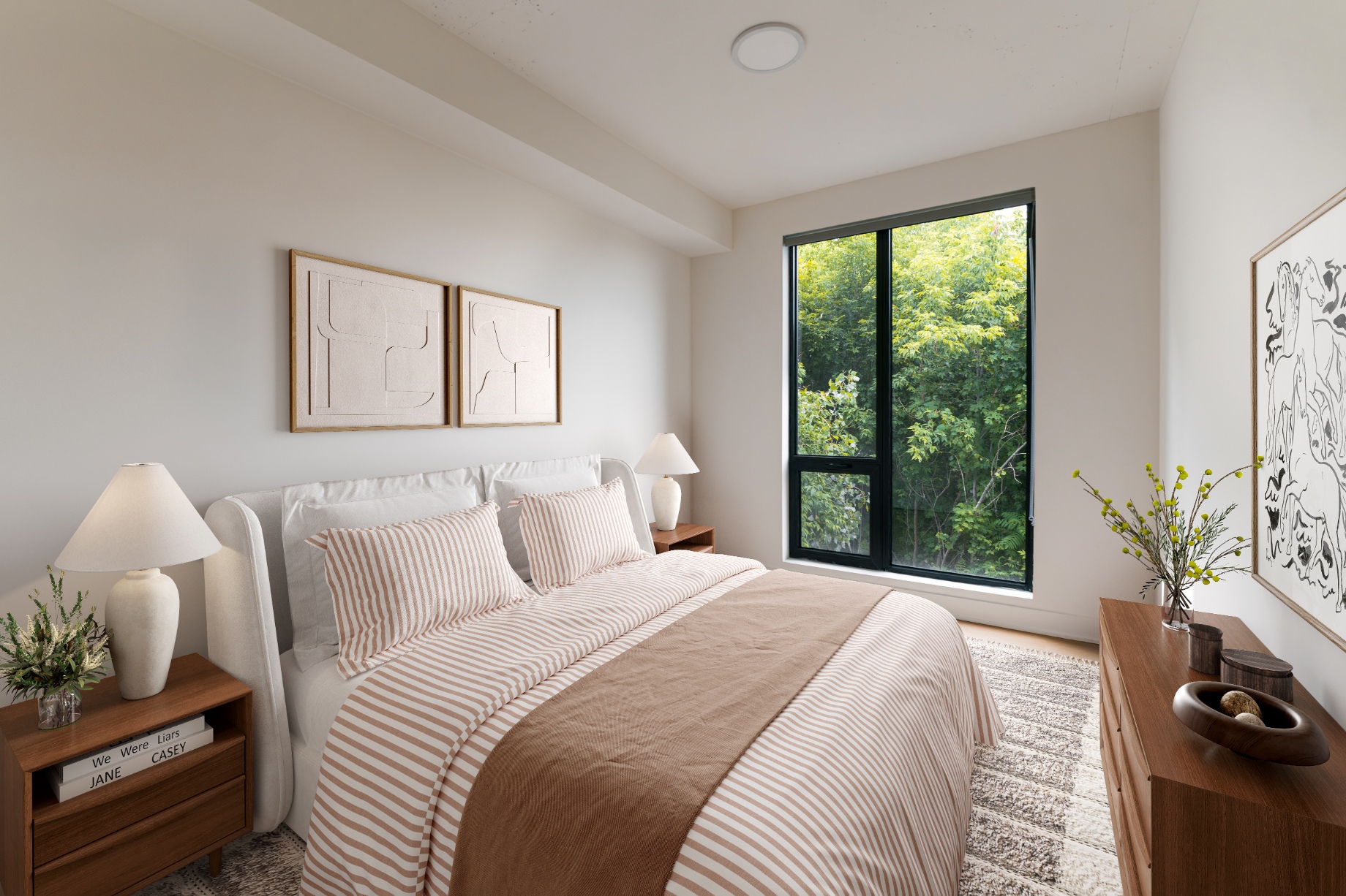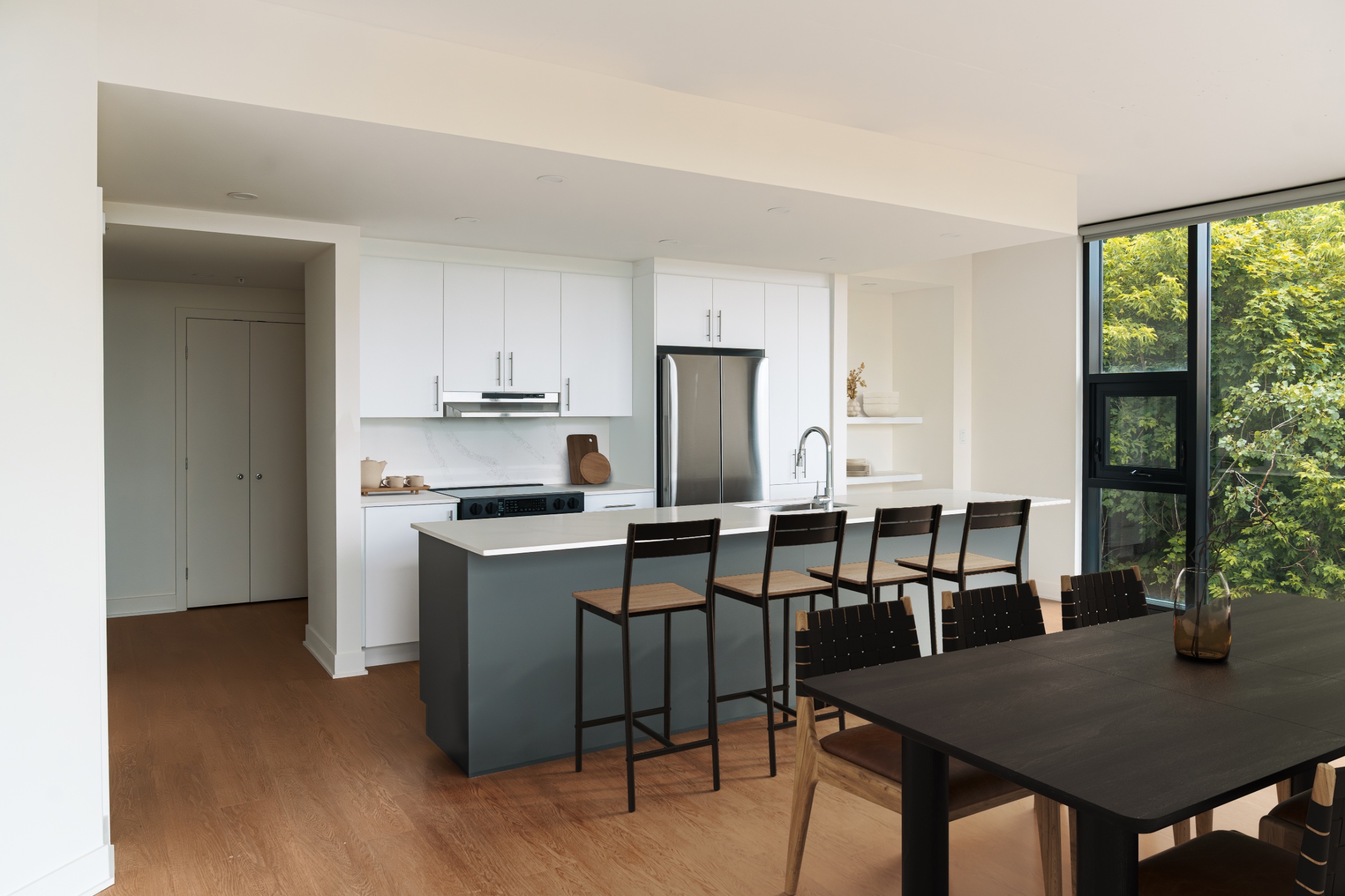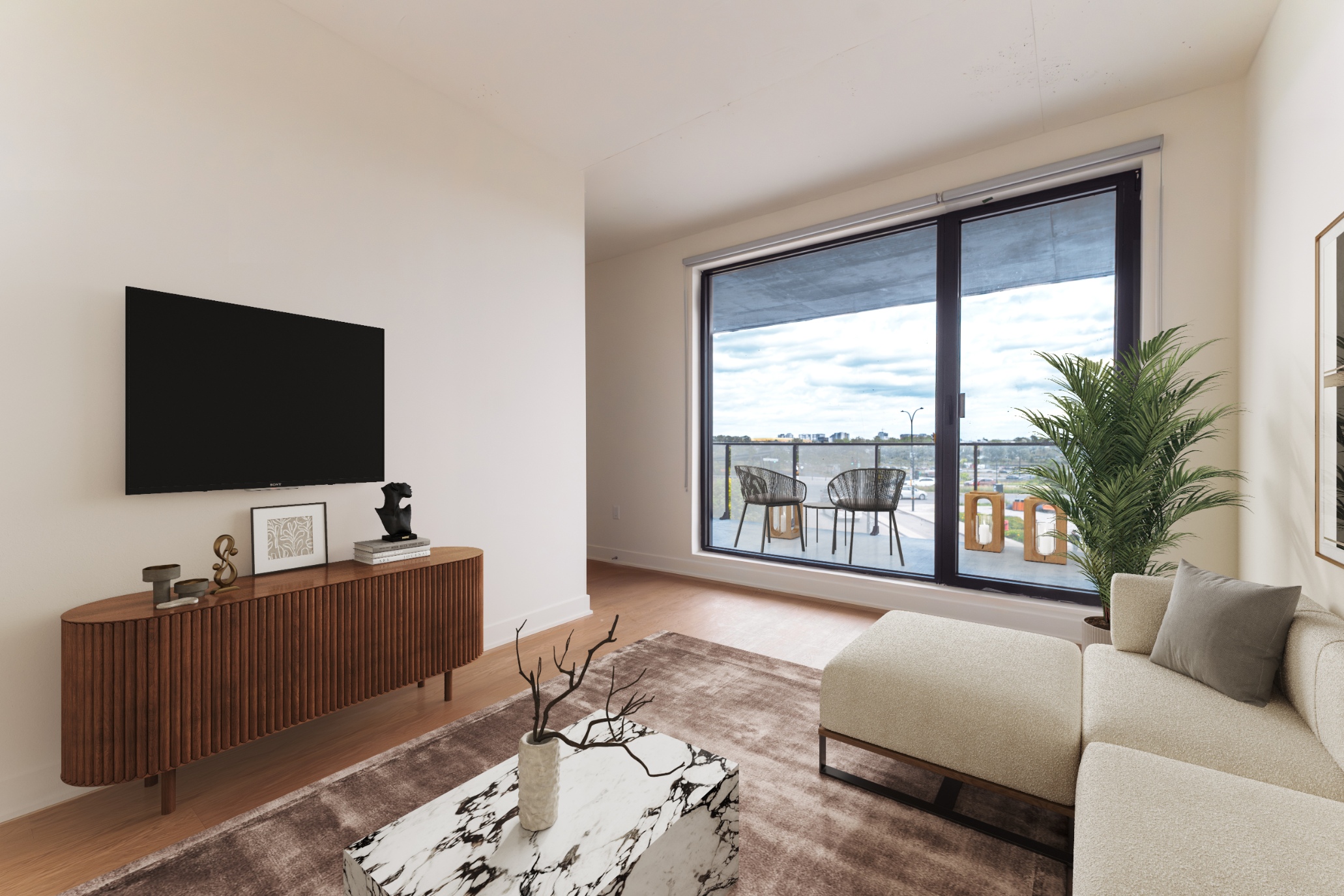 Bellevue offers design forward one-, two- and three-bedroom suites with premium appliances and modern finishes. Suite features include expansive floor to ceiling windows and large private balconies with exceptional views of the future park along Autoroute-20. Embrace exceptional amenities including a residents-only gym, outdoor rooftop terrace, secure door access controls on all common areas and EV charging stations.