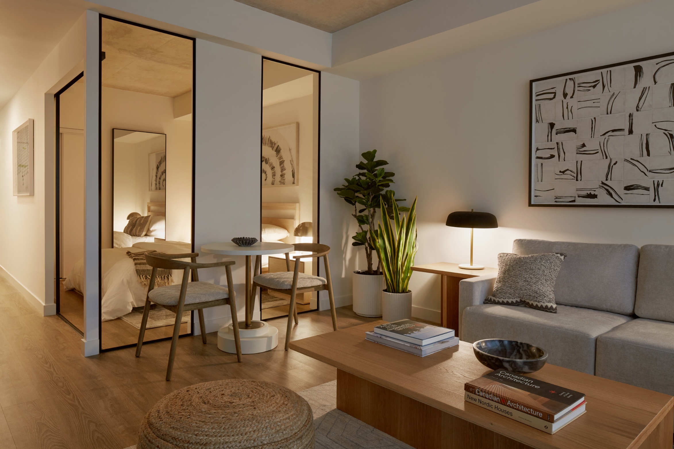 Conceived by Teeple Architects and Mason Studios, Queen & Ashbridge’s design is inspired by its natural environment, vibrant community and modern principles of wellness. Choose from a studio, one-, two- or three-bedroom suite.